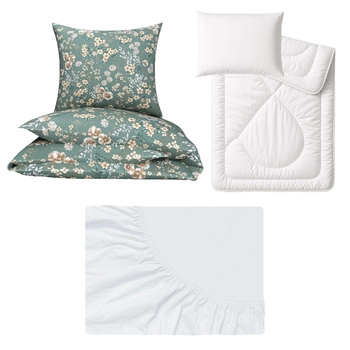 Zestaw pościeli 100x160 + 40x60 + prześcieradło jersey 80x160 | 205zie | szałwiowa | kwiaty