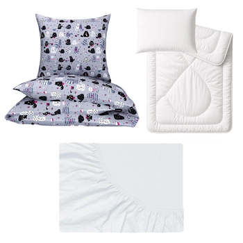 Zestawy pościeli do łóżeczka dla dziecka 100x160 + 40x60 + prześcieradło jersey 80x160