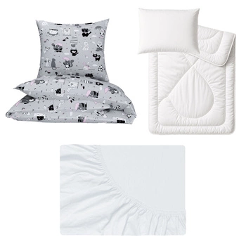 Zestaw pościeli 100x160 + 40x60 + prześcieradło jersey 80x160 | 112róż | szaro różowa | koty