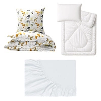 Zestaw pościeli 100x160 + 40x60 + prześcieradło jersey 80x160 | 121kon | biała | polne kwiaty