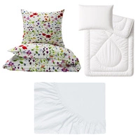 Zestaw pościeli 100x160 + 40x60 + prześcieradło jersey 80x160 | 129blu | biała | polne kwiaty