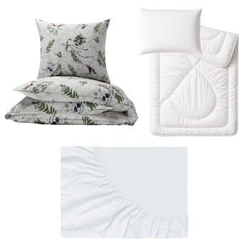 Zestaw pościeli 100x160 + 50x60 + prześcieradło jersey 80x160 | 179biały | biała | ptaki