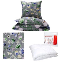 Zestaw pościeli 100x160 + 40x60 + prześcieradło we wzorze 80x160 | 348sza | szara | kwiaty bratki