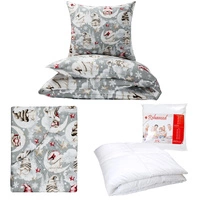 Zestaw pościeli 100x160 + 40x60 + prześcieradło we wzorze 80x160 | 421zie | szara | wzór świąteczny skrzaty