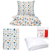 Zestaw pościeli 100x160 + 40x60 + prześcieradło we wzorze 80x160 | 411bia | biała | dinozaury