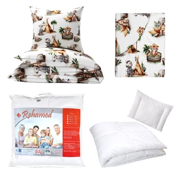 Zestaw pościeli 100x160 + 40x60 + prześcieradło we wzorze 80x160 | 166bia | biała | zwierzęta leśne