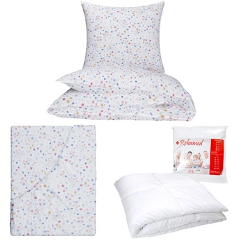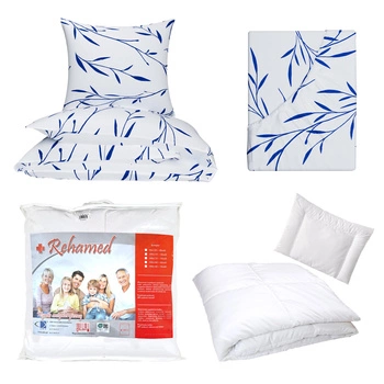 Zestaw pościeli 100x160 + 40x60 + prześcieradło we wzorze 80x160 | 003gra | biało granatowa | piórka | piórka