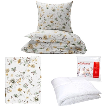 Zestaw pościeli 100x160 + 50x60 + prześcieradło we wzorze 80x160 | 415zol | biało żółta | polne kwiaty