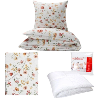 Zestaw pościeli 100x160 + 50x60 + prześcieradło we wzorze 80x160 | 415red | biało czerwona | polne kwiaty