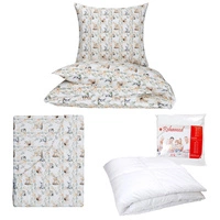 Zestaw pościeli 100x160 + 50x60 + prześcieradło we wzorze 80x160 | 210lew | biała | safari lwy