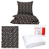 Zestaw pościeli 100x160 + 40x60 + prześcieradło we wzorze 80x160 | 432rud | czarno brązowa | koty