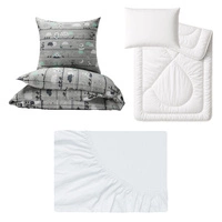Zestaw pościeli 100x160 + 40x60 + prześcieradło jersey 80x160 | 017s-m | biała | świąteczna choinki
