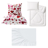 Zestaw pościeli 100x160 + 40x60 + prześcieradło jersey 80x160 | 073b-c | biało czerwona | serca Walentynki
