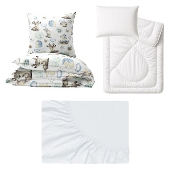 Zestaw pościeli 100x160 + 40x60 + prześcieradło jersey 80x160 | 014las | biała | zwierzątka leśne