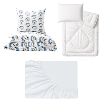 Zestaw pościeli 100x160 + 40x60 + prześcieradło jersey 80x160 | 138nie | niebieska | safari auta