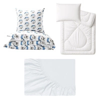 Zestaw pościeli 100x160 + 40x60 + prześcieradło jersey 80x160 | 145kolo | biała | gwiazdki
