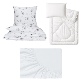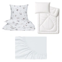 Zestaw pościeli 100x160 + 40x60 + prześcieradło jersey 80x160 | 246pol | biała | myszki zwierzątka