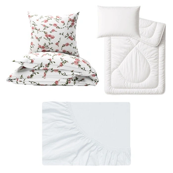 Zestaw pościeli 100x160 + 50x60 + prześcieradło jersey 80x160 | 336los | biała | kwiaty piwonie