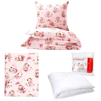 Zestaw pościeli 100x160 + 50x60 + prześcieradło we wzorze 80x160 | 511róż | różowa | żyrafy