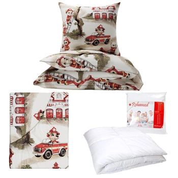 Zestaw pościeli 100x160 + 50x60 + prześcieradło we wzorze 80x160 | 217psi | szaro czerwona | psy strażacy