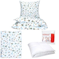 Zestaw pościeli 100x160 + 50x60 + prześcieradło we wzorze 80x160 | 210mor | niebieska | żółwie ryby morski