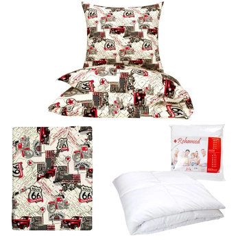 Zestaw pościeli 100x160 + 50x60 + prześcieradło we wzorze 80x160 | 245ecr | ecru | stare auta