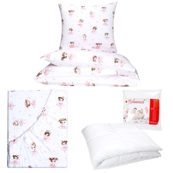 Zestaw pościeli 100x160 + 50x60 + prześcieradło we wzorze 80x160 | 275ROZ | biało różowa | baletnice i nutki