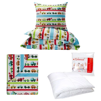 Zestaw pościeli 100x160 + 50x60 + prześcieradło we wzorze 80x160 | 088nie | niebieska | autka