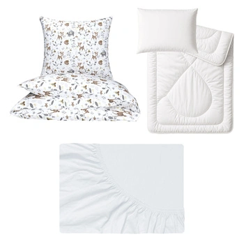 Zestaw pościeli 100x160 + 50x60 + prześcieradło jersey 80x160 | 314wie | biała | sarenki i króliczki