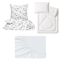 Zestaw pościeli 100x160 + 50x60 + prześcieradło jersey 80x160 | 314miś | biała | zwierzątka leśne