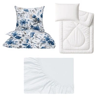Zestaw pościeli 100x160 + 50x60 + prześcieradło jersey 80x160 | 382nie | biała | kwiaty piwonie